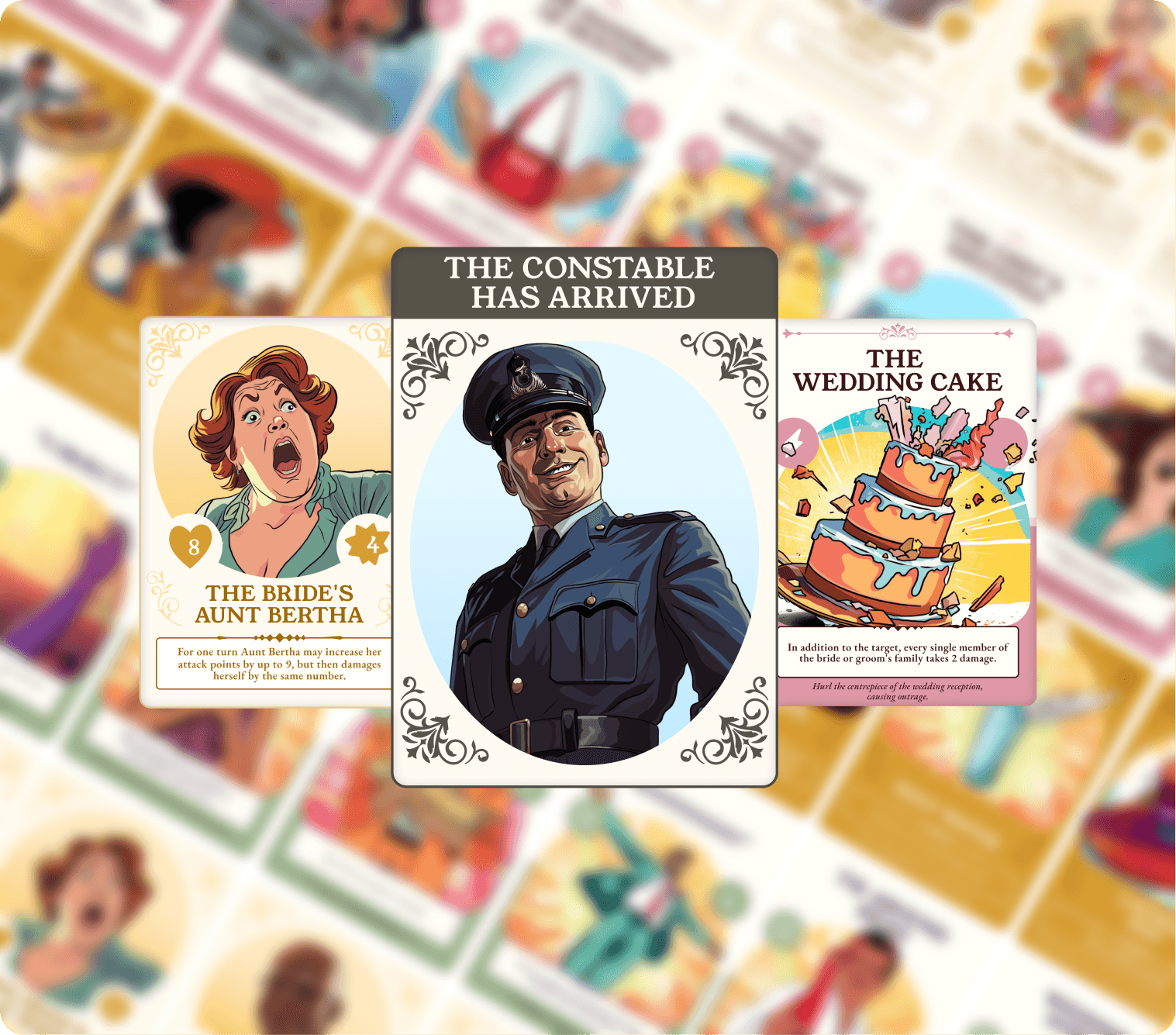 I also collaborated with an Social Media Director on the development of Wedding Trashers, a wedding-themed card game, where I served as the primary illustrator responsible for creating over 100 character illustrations. Working from a range of Midjourney-generated concept references, I translated and refined these outputs into a cohesive, original illustrative style, ensuring consistency across form, line, colour, and character expression. The scope of the project grew significantly beyond initial expectations, requiring sustained iteration, strong visual system thinking, and disciplined file organisation. Built entirely in Procreate, this work strengthened my ability to scale an illustration style across a large asset set while maintaining quality, clarity, and creative intent.